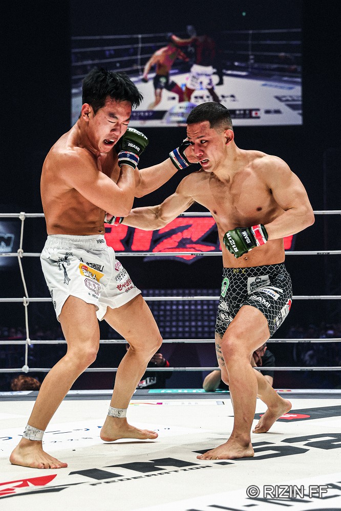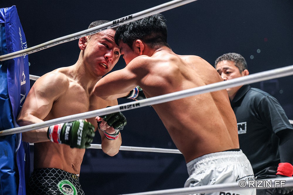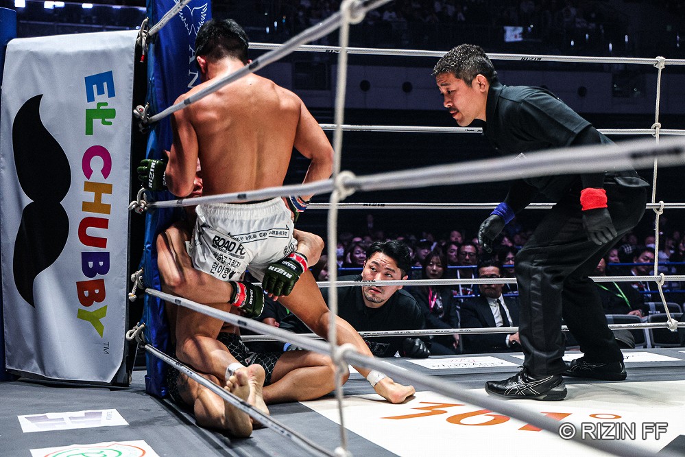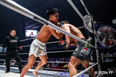 【RIZIN52】ボディ狙いの新井丈を首相撲で削り続けたイ・ジョンヒョン。レフェリーストップでRIZIN初勝利