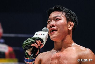 RIZIN3戦目で初勝利となったイ・ジョンヒョンは、マイクを持つと日本語で「こんにちは! めっちゃ嬉しいです。RIZINの皆さん、本当に応援ありがとうございます。韓国のファンの皆さん、カムサハムニダ」と挨拶した。