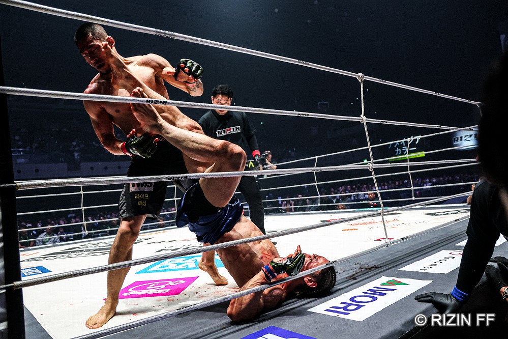 【RIZIN52】キム・ギョンピョ初回にTD→グラウンドのヒジで矢地の顔面を切り裂き、2Rストップ勝利