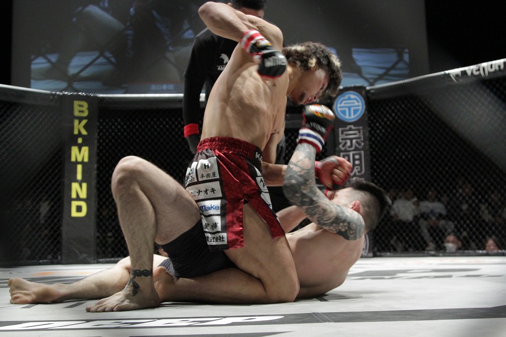 【写真】ダウンを2度喫した濱口が、パウンドアウトでTKO勝ち(C)SHOJIRO KAMEIKE