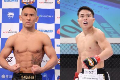 雅も今大会で無事、戦線復帰。瀧澤謙太と戦うことに。またストロー級では昨年12月に3戦目でベルトを巻いた杉山空が、8日のDEEP OSAKA Impact2026第一弾で武蔵を三角絞めで破り、プロデビュー以来のフィニッシュ勝利による連勝を6に伸ばした知名昴海を相手に初防衛戦を戦うことも決まった。