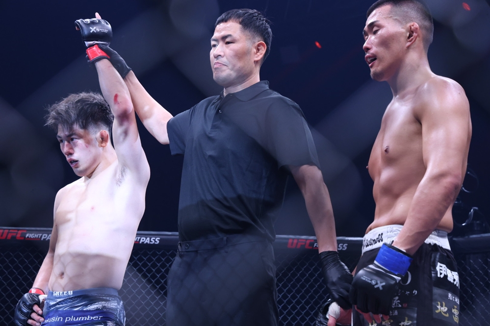 神谷はテイクダウンを仕掛けつつバックへ。おたつロックの形を作った神谷はパンチを入れながらモディファイド・ツイスターを狙い、試合終了を迎えた。判定は2-1と割れ、神谷が接戦を制した。