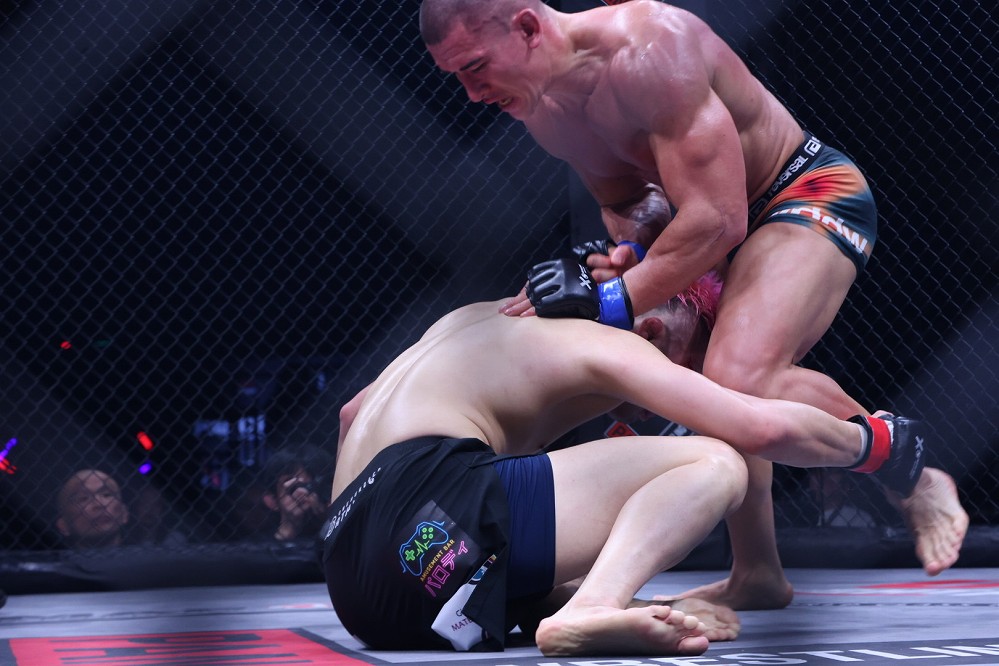 レーベンが距離を詰めると内藤が右アッパーを浴びせるも、レーベンの右フックも内藤の顔面を捉える。足をすくわれ倒れたレーベンだが、すぐに立ち上がり打撃を繰り出す。右跳びヒザを見せるレーベン。内藤も右ストレートを伸ばすが、レーベンのワンツーがクリーンヒットする。内藤のシングルレッグを切ったレーベンがガブる。内藤がバックを狙ってくると切り返し、バックマウントを奪取したレーベンがRNC→パンチを連打。全て顔面で受けてしまう内藤——そのままレーベンがバックマウントをキープして試合を終えた。