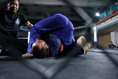 ボトムから抱え込むスリアン。藤田は左右に揺さぶり、左へパスした。スリアンの左腕を取り、腕ひしぎ腕固めでタップを奪った。スリアンは試合中にヒザを負傷していたようで、担架に乗せられケージを降りた。