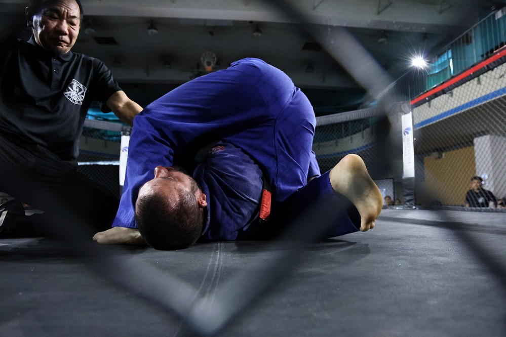 藤田は左へパスして削り、胸を合わせて押さえ込む。スリアンの鉄砲返しを凌いだ藤田。ハーフに戻されたが即パスしてサイドに戻った。藤田は右腕を差し上げて、左ヒジを落とす。削りながら袈裟固め→マウントに移行するも、スリアンがクローズドガードに戻す。しかしそれ以上展開できないスリアンの顔面に、藤田がパウンドの連打を叩き込む。