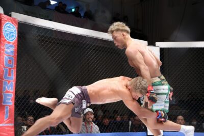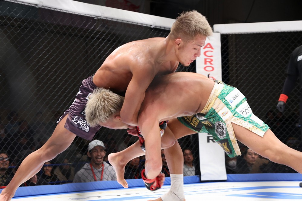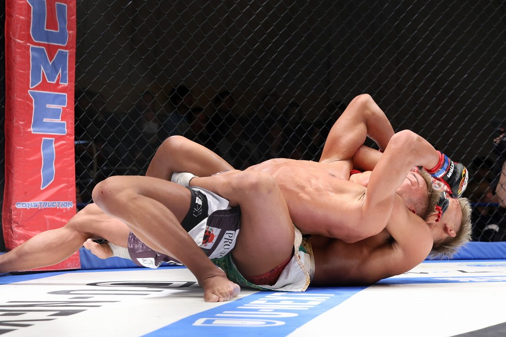 【写真】力也がテイクダウン防御&ネルソンでレスリング力を発揮した(C)MMAPLANET