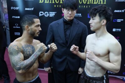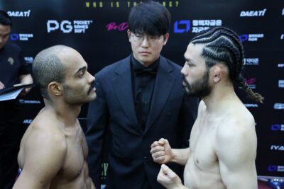 またブラジル側ではウェルター級で田中有と戦うルカス・マルケスが本計量で1.1キロ・オーバーし、再計量でなんとか78.6キロと1キロ以内に失敗幅を収めた。加えてフェザー級でTOMAと対戦するヴィクトル・ウゴの本計量は68.9キロ、再計量も変わらず2.6キロ・オーバーとなった。