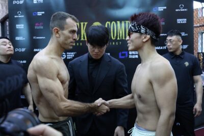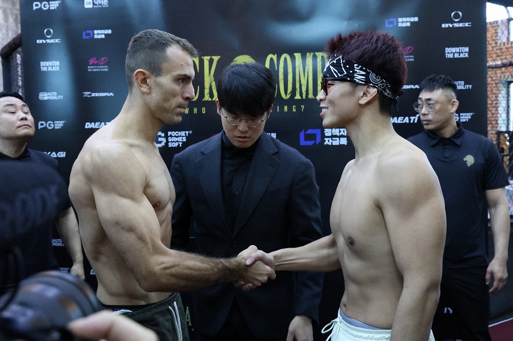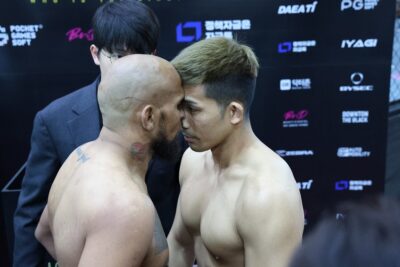 それでも事態を傍観している感のある山本琢也はデベウソン・バチスタと、トラッシュはトラッシュと割り切る佐藤龍汰朗はマルコ・ヴィニシウスと握手をして雰囲気を収めていたものの、大番高明と相対したヒシャルジ・ジャコービはかなり力を入れて前に出る。大番も踏み込み返し、計量会場に緊張が走った。