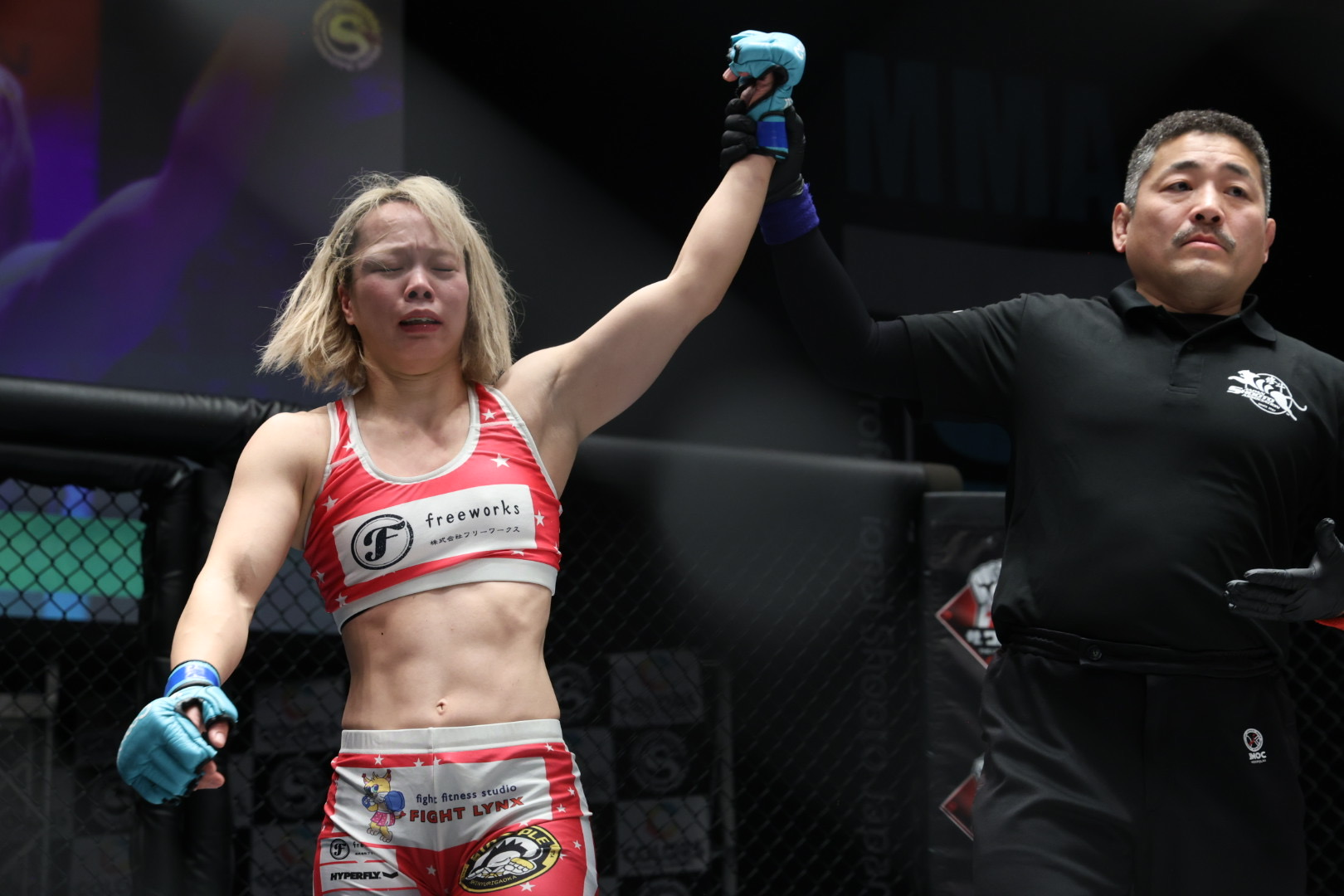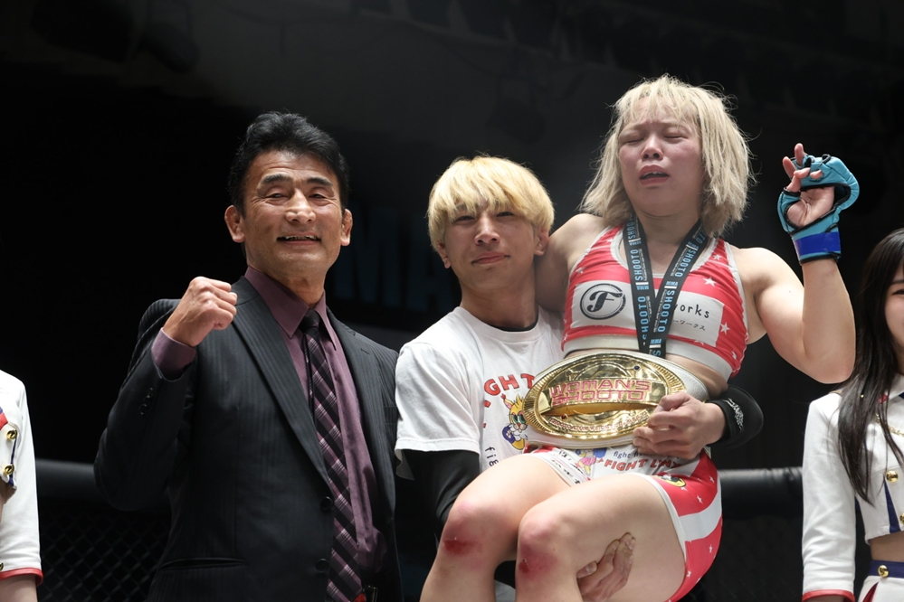 判定はジャッジ3名とも48-47で青野を支持。第3代王者としてベルトを巻いた青野は修斗への想いを語り「これから私が修斗の顔になれるようにベルトを価値を上げられるように頑張ります」と挨拶。最後は義理の父で初代修斗ウェルター級(現ライト級)王者の渡部優一さん、夫でもある渡部修斗と3人で記念撮影に収まった。