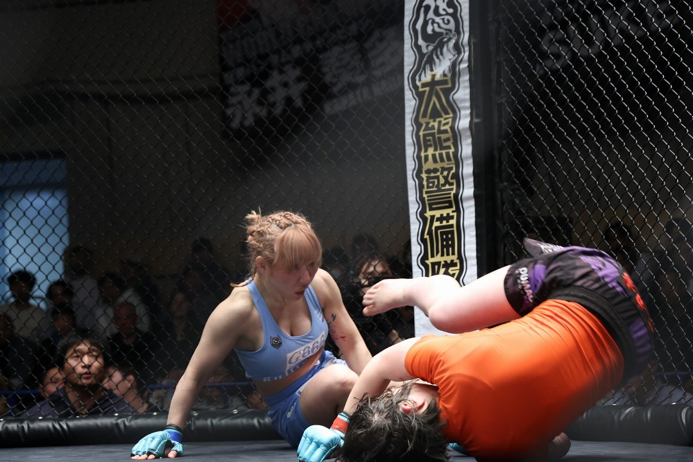 最終回、高本が左ミドル。村上は左に回って組むもテイクダウンはならず。高本の右ローをキャッチしてドライブする。しかし突き放した高本の右フックがクリーンヒットし、村上がフラついた。すかさず組んだ高本がボディロックから崩し、トップを奪う。村上はフックガードから、立ち上がった高本の左足を取ってリバーサルに成功。パウンドで削ってパスを仕掛ける。