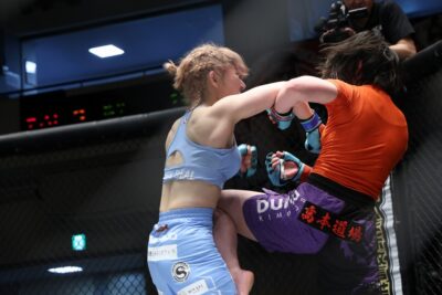 裁定はジャッジ2名が20-18をつけて高本の勝利。この白星で女子スーパーアトム級インフィニティリーグ優勝を果たした高本は、「今日は体力が足りなかったというか、相手のガッツに負けかけたところがあったんですけど、道場の皆さんの応援のおかげで頑張りきることができました」と周囲に感謝を述べたあと、「次のステップに行けるよう精進します」と語った。