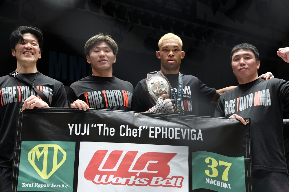 ベルトを巻いたエフェヴィガは「ベルトを2つ獲りました! 前回負けてからのタイトルマッチだったので、不満の声も多かったと思います。自分もそう思います。とにかく自分の仕事をしようと思いました」と語り、ファイトキャンプへの感謝と平良達郎への敬意、そして自分も平良に続きたいとアピールした。