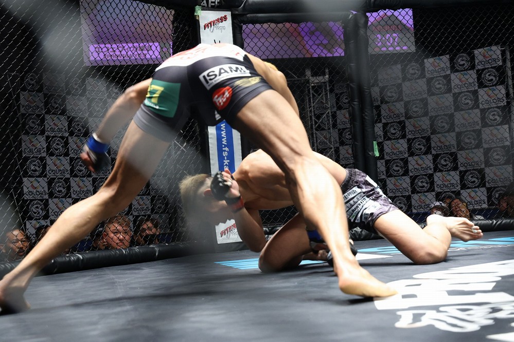 キャプテンが距離を詰めると、エフェヴィガが左に回る。キャプテンの左を被弾しながらもエフェヴィガが左アッパーを返した。亀になったキャプテンにパンチを連打すると、自ら立ち上がる。スタンドに戻り、左を効かせ続けるエフェヴィガ。キャプテンがダウンすると、パウンドを打ち込みトップに回った。