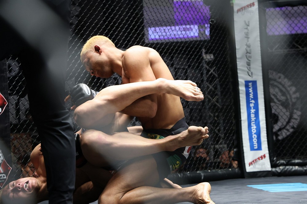 右腕を差し上げ、左ヒジを狙ったがエフェヴィガにかわされ、パウンド連打を受ける。なおも下から腕を狙うキャプテンに対し、エフェヴィガが立ち上がる。キャプテンがマットに背中を着けた状態が続いたため、レフェリーがブレイクを掛けた。再開直後、エフェヴィガが左ヒザで倒し、そのままパウンドアウトした。