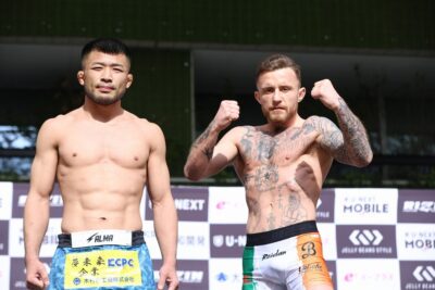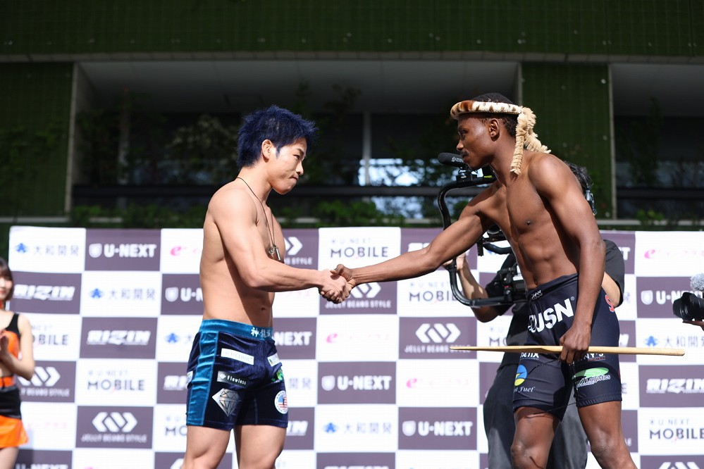 11日(土)、翌12日に福岡市博多区のマリンメッセ福岡A館で開催されるRIZIN LANDMARK13のセレモニアル計量が、福岡市役所西側ふれあい広場にて行われた。