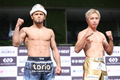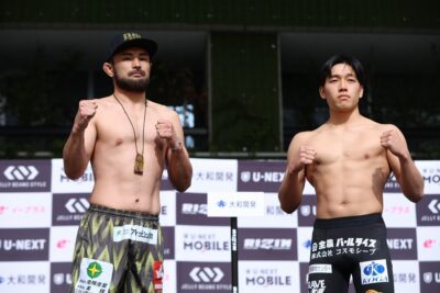 天弥はセレモニアル計量に登場せず、71キロのバンタム級リミットを3.5キロオーバーしていると発表された。計量をクリアしている対戦相手のズマガジーは試合の実現を希望しているため、主催者とJMOCで試合実施の可否を検討中とのことだ。天弥も前日のメディアデーに問題なく参加していたため、水抜きの中で何かが起きたのか――両者の体重差ももちろんだが、天弥のコンディション面も心配される。試合が実施されるかどうかは、RIZIN公式SNS等で発表されるとのことだ。