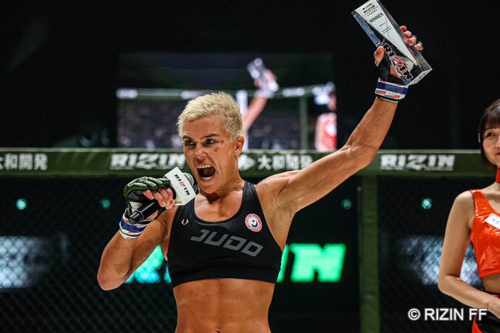 【RIZIN LANDMARK13】五輪柔道家&LFA王者クジュティナが浜崎に一本勝ち。タイトル挑戦をアピール