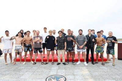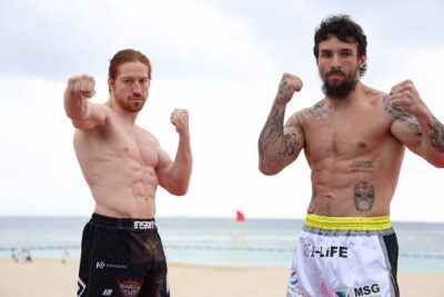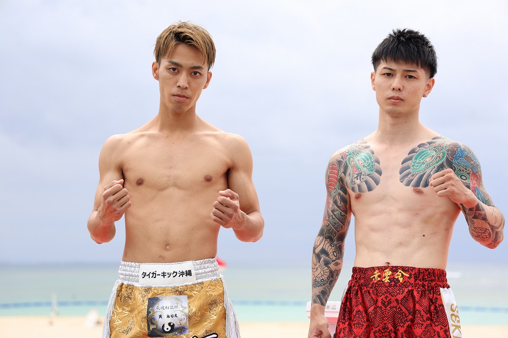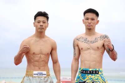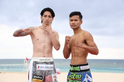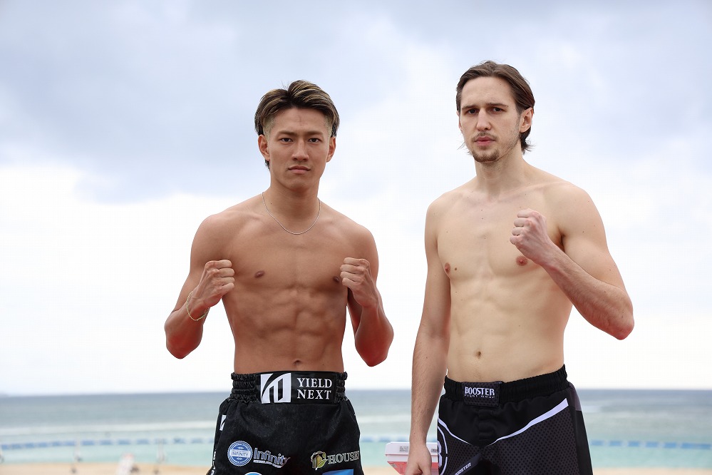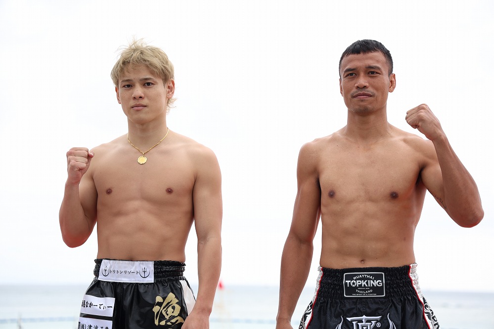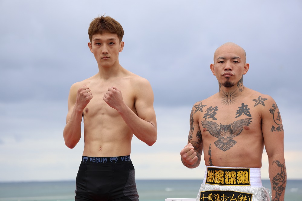 メインイベントでシッティチャイ・シッソンピーノンの挑戦を受ける形となるKNOCK OUT-BLACKスーパーウェルター級(※70キロ)王者・漁鬼は「明日はメインを任されているので、シッティチャイ選手をKOで倒して大盛り上がりで沖縄大会の幕を閉じます」とKO宣言。シッティチャイは「今回沖縄は初めての舞台で、海がとても綺麗でワクワクしています。明日の試合を盛り上げてファンのみなさまを楽しませます」と余裕の笑みを浮かべた。