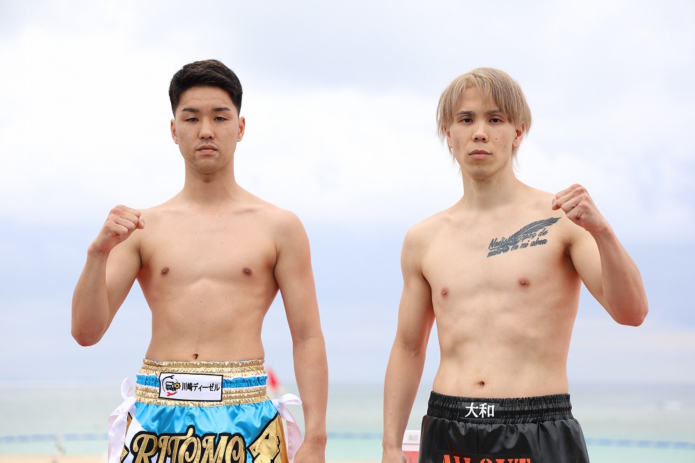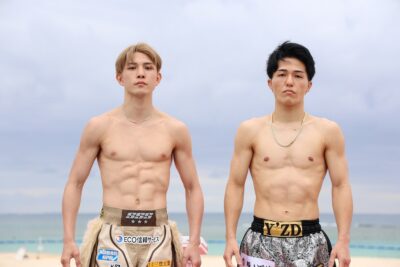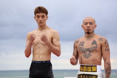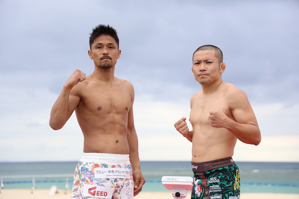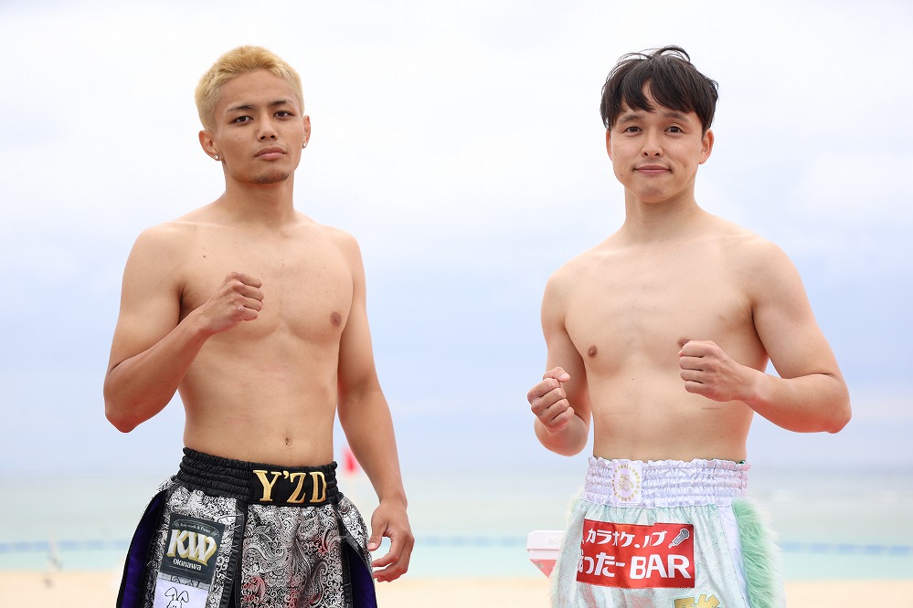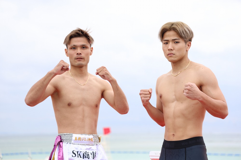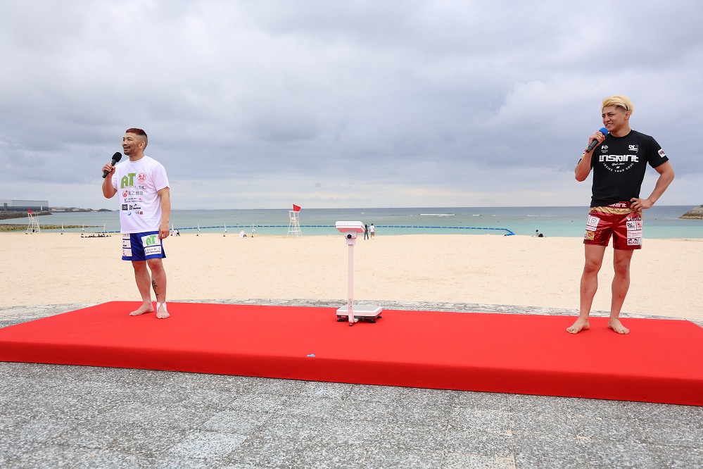 17日(金)、翌18日(土)沖縄県宜野湾市の沖縄コンベンションセンターで開催されるKNOCK OUT63「KNOCK OUT SPRING FES in OKINAWA」のセレモニアル計量が、同センター前のビーチにて行われた。