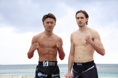 そしてコメインのUNLIMITEDルール(73キロ契約)=スパイク・カーライルと木村“フィリップ”ミノルはカーライルが72.90キロ、木村が72.70キロで計量をクリア。それぞれ「最高の対戦相手のおかげでここまえ仕上げることが出来ました。明日は全身全霊で挑みたいと思います」(木村)、「ビューティフル、オキナワ、スバラシイ! 計量もお互いクリアして、いいトレーニングが出来たと思う。明日は最高のパフォーマンスを見せる」(カーライル)と意気込みを語った。