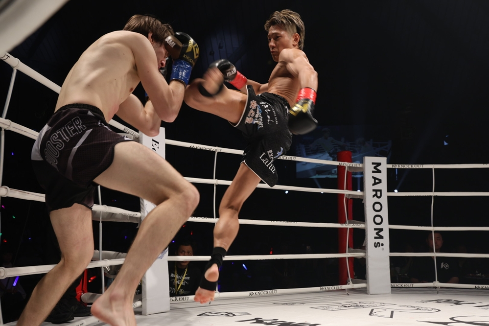 【KNOCK OUT63】龍聖が右ボディ&三日月蹴りでクラークを一蹴。6月代々木でのBLACK王座戦を宣言