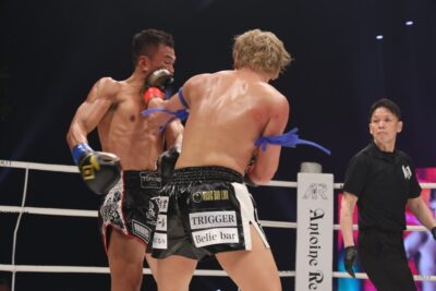3R、シッティチャイは左ミドルとヒザ蹴り、左ミドル、奥足ローで攻める。漁鬼も右ストレートを当てるが、シッティチャイは左のヒザ蹴り、ボディストレート、左ストレート。漁鬼も右ストレートと左フックを当てる。下がらないシッティチャイは左ミドルと左ストレート、左ミドル、左ストレートを突き刺す。漁鬼も必死に右ストレートを返す。
