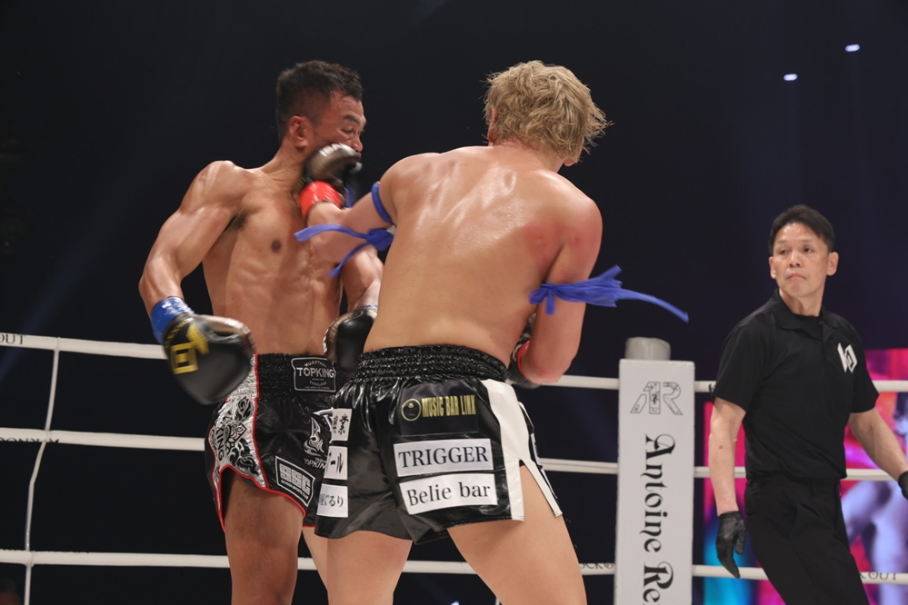 シッティチャイは左ミドルと左ストレート、距離を取りながら左ミドルと左ハイを蹴る。漁鬼は右ストレートで飛び込んで左フックにつなげる。シッティチャイは組んで追撃を阻止し、再開後に左ボディストレートと左のヒザ蹴り。距離が開くとシッティチャイが左ミドルを蹴る。漁鬼が右ストレートから前に出ると、シッティチャイも右フックから外に回って左ハイを蹴る。