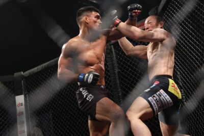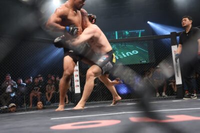 2R、西條が細かくフェイントを見せて左ミドルを蹴る。クーパーは前に出て右カーフを蹴り、ジャブを伸ばす。西條も右カーフを蹴り返し、クーパーは右フックを伸ばす。クーパーがジャブのフェイントをかけ、西條はインローを蹴る。クーパーが左フックから右ストレート、左フックを打ち込む。組みつく西條だったが、ここはテイクダウン出来ずに下になる。