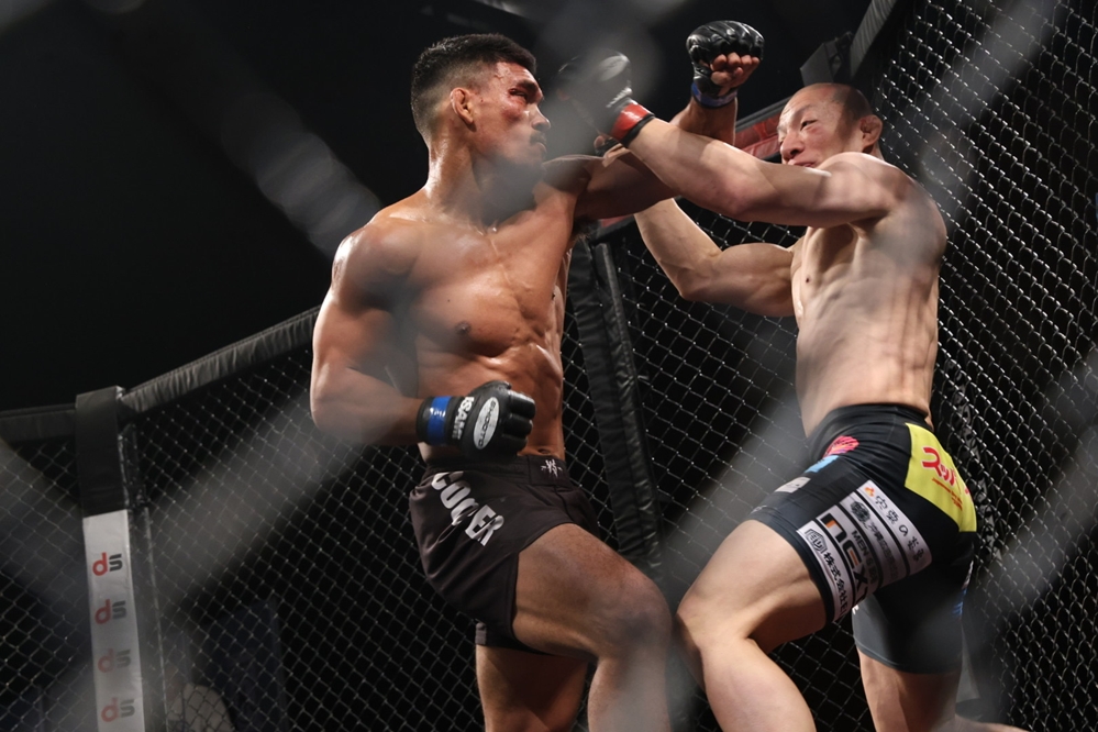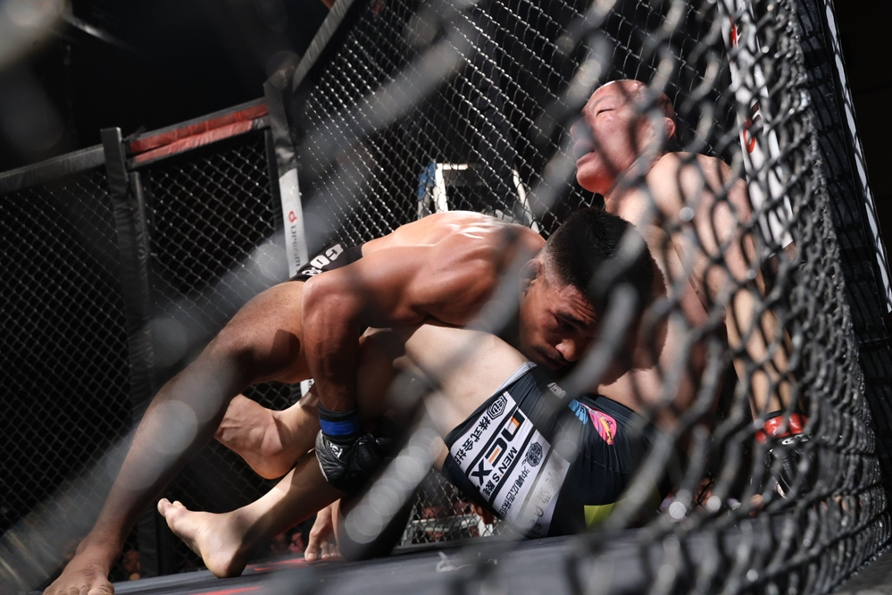 西條はフックガードからスイープを仕掛け、クーパーは西條の右足を超えつつ頭をつけてトップキープして、細かくパンチを落とす。西條は半身になって潜ろうとするが、クーパーは左手を使って西條を寝かせる。西條はケージに体を預けて立ち上がろうとするが、クーパーが西條を寝かせながらパンチを落とす。西條が右膝をついて立とうとすると、クーパーは西條の左足を両足で挟んでコントロールする。
