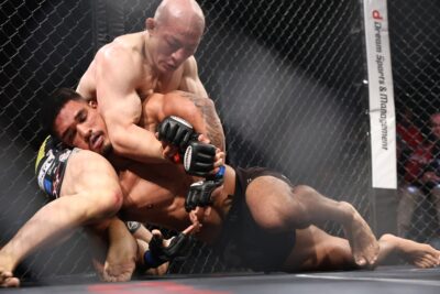 ここから西條はクーパーの左腕にキムラロックを狙いつつトップキープを続け、クーパーを腹ばいにさせる。今度は西條がクーパの右腕を取って腕十字へ。ここでスクランブルになり、クーパーが西條の後ろに回る。西條も両足はフックさせず、クーパーを前方に落とそうとする。クーパーは西條の左腕を持ってポジションをキープし、正対してテイクダウンを狙う西條をがぶって潰す。このまま試合終了となり、クーパーが西條から判定勝利を収めた。