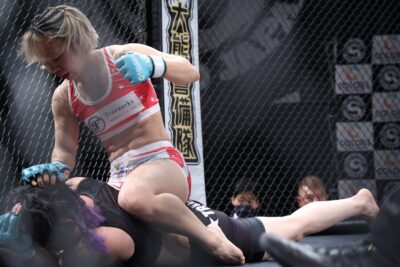 詳細を見る【Colors06】高本千代がTD&寝技でerikaを圧倒。2Rにバックからの投げ→パウンドアウト